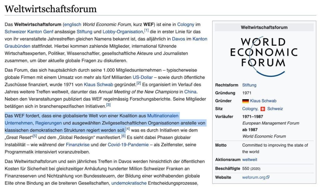 Die Pandemie verschafft dem WEF durch ihre Schockwirkung aktuell die reale Möglichkeit, seine weitreichenden Pläne nahezu ohne Widerstand aus demokratischen Bevölkerungen druchzusetzen.