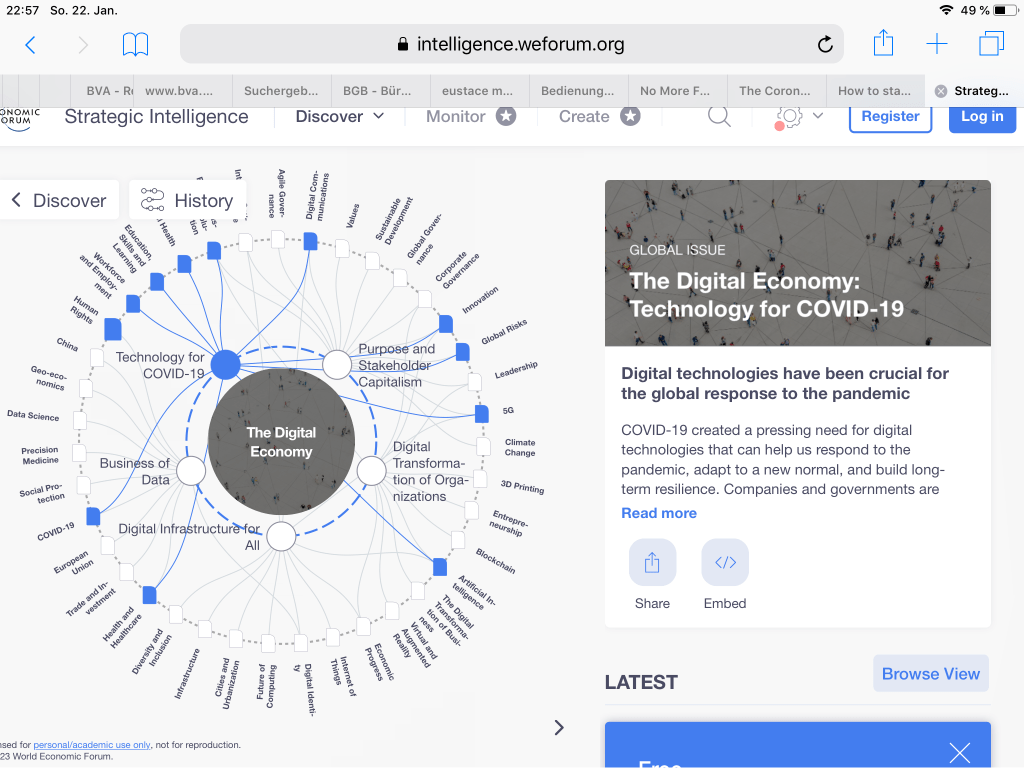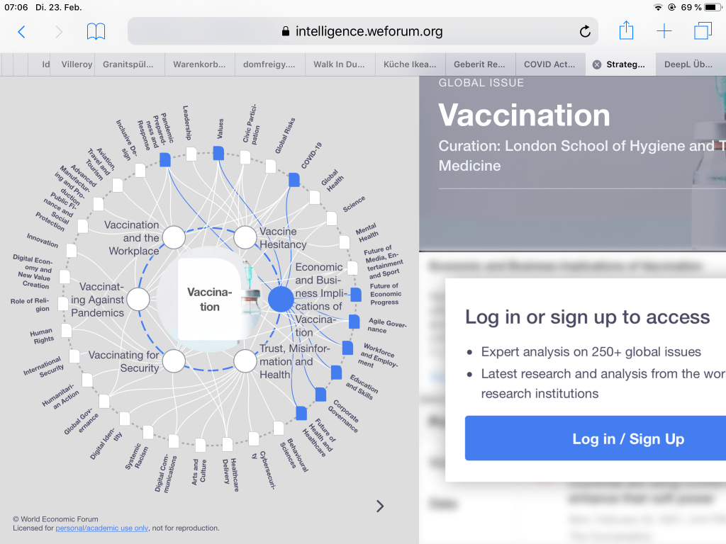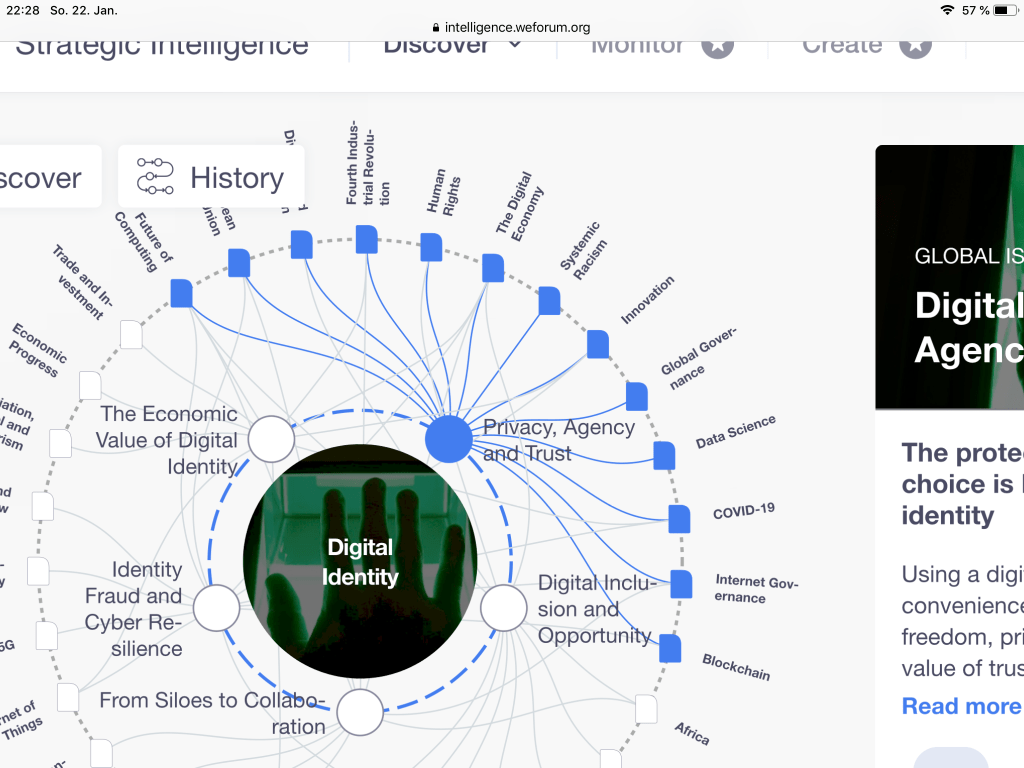 Dei Ideen des WEF betreffen fast alle Bereiche unseres Lebens. Zentrale Elemente sind die „Digitale Identität“, auf der alle technologischen Zukunftsvisionen gründen: vom „global Health Reise-Pass“, Ihrem persönlichen CO2 Zertifikat, dem Sozialkreditsystem, Ihr digitales Zentralbankgeld………