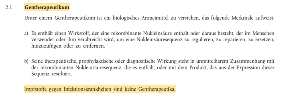 Nur nochmal zur Erinnerung, die irreführende Bezeichnung „Impfstoffe“ verdanken die neuen RMA-Technologien diesem unscheinbaren Zusatz in der EU Richtlinie von 2009:
