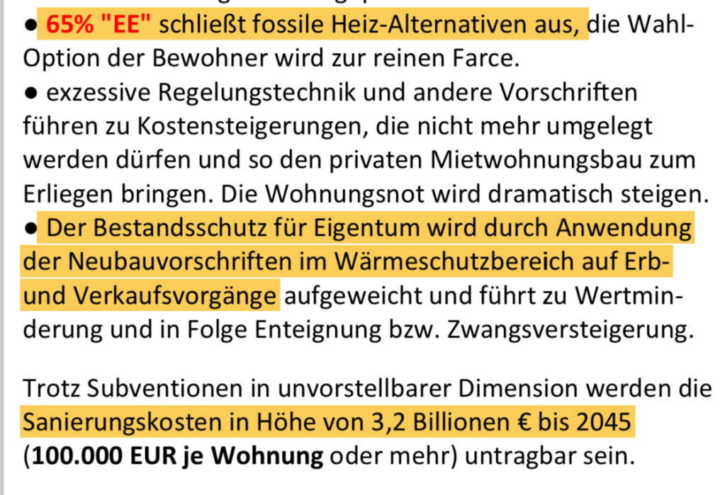 Etwas weniger offensichtlich erfolgt parallel die schleichende Enteignung über Klima-Auflagen: