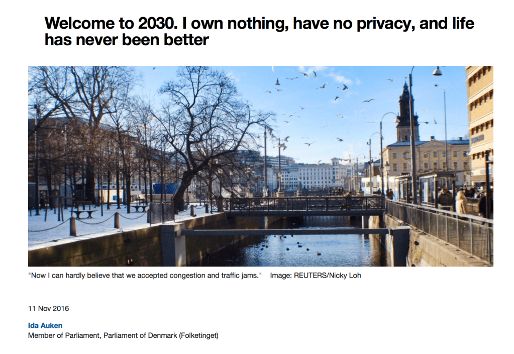 Young global Leader Ida Auken stellte 2016 beim WEF die Vision ihres Lebens in einer Smart City 2030 vor: