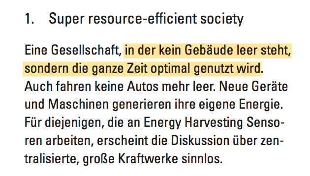 „Ich besitze kein Haus. Ich besitze keine Geräte und keine Kleidung……………Alles, was wir einmal als Produkt betrachteten, ist in unserer Welt zu einer Dienstleistung geworden“.