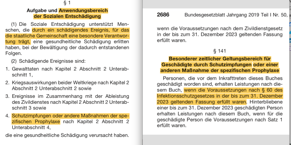 Bemerkenswert ist insbesondere, daß vorausschauend auch die Entschädigung von Impf-Opfern mit aufgenommen wurde……….im Dezember 2019.