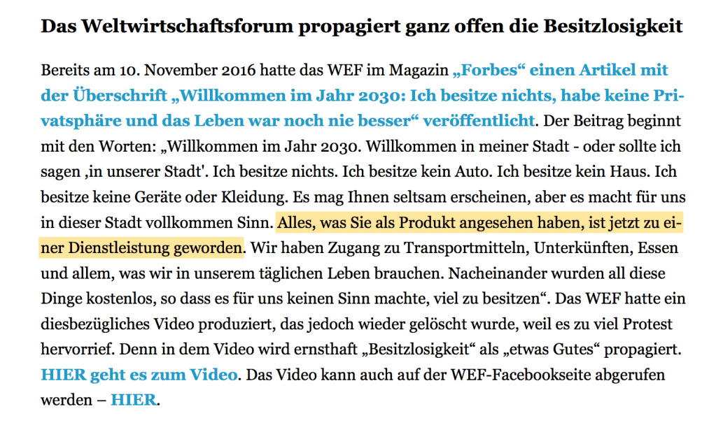 Was meint das WEF mit der Aussage „Du wirst nichts besitzen und glücklich sein……….“?