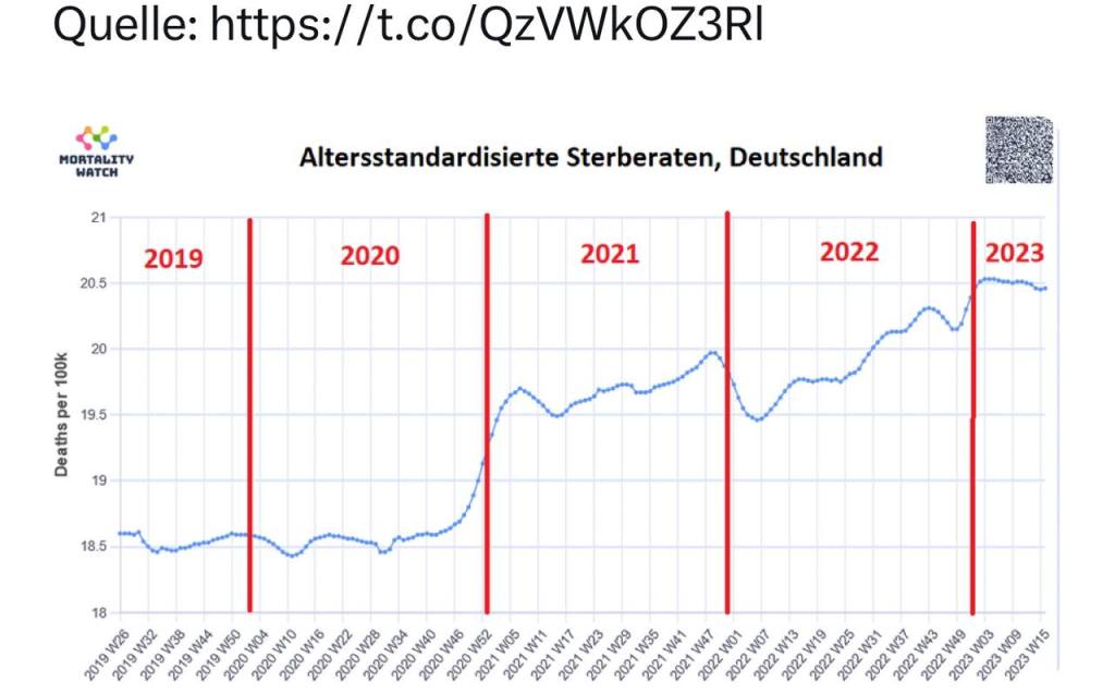 Besorgniserregend auch die Entwicklung der weltweiten Übersterblichkeitsdaten seit 2021.